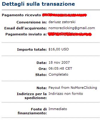 Ennesimo pagamento ricevuto da NoMoreClicking.com :D